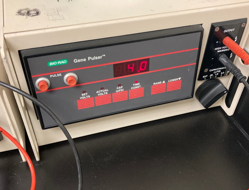 2025/05/15 – Cloning complex libraries is underway in PJAB. After multiple dielectric discharges with a legacy Gene Pulser, we can now electroporate at near 100% success. Many classes of reporters are being constructed, with millions of plasmids made. Impressive command of molecular biology techniques from our stellar interns Pierre-Olivier, Lorena, Yany, and Zia.