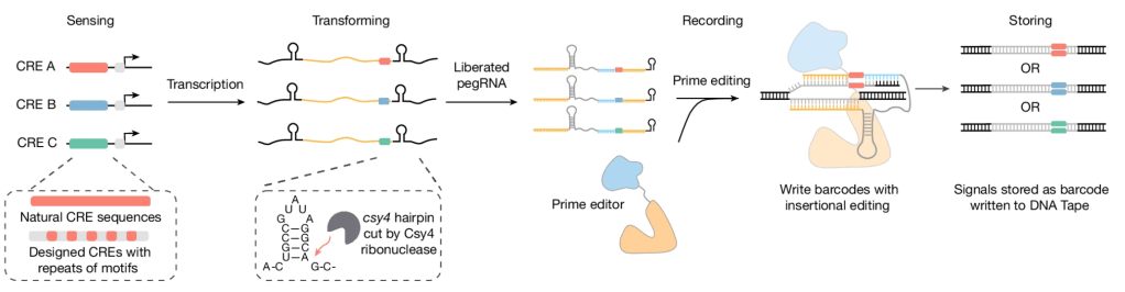 Symbolic recording of signalling and cis-regulatory element activity to DNA
