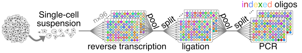 We use an ‘open-source’ optimized, plate-based combinatorial indexing approach, as detailed here, to perform single-cell-seq at a fraction of the cost of commercial platform. The lab has experience leveraging the assay for functional measurements in addition to the usual molecular ‘atlasing’ of multi-cellular samples